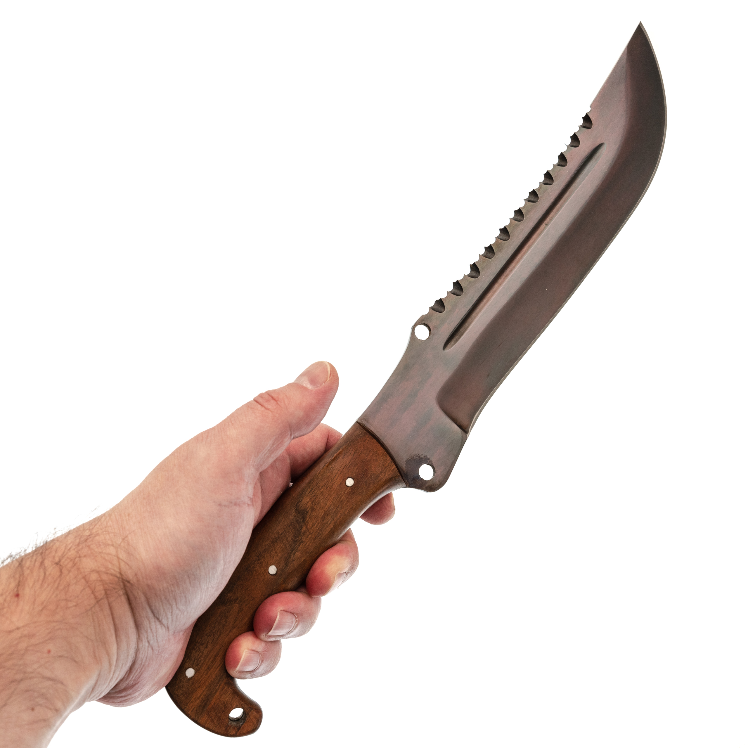Нож красивый и функциональный - типичный "лагерный" нож. Неожиданно оказался больше по размерам, чем я предполагал, но это даже к лучшему. Удобный, тяжёлый, надёжный. Очень хорошо!