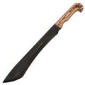 Лезвие мачете Риддик отличается внушительной шириной и оптимальной толщиной, что обеспечивает высокую проникающую способность и эффективность при рубке. Форма клинка универсально: можно с легкостью перерубить кустарник, подготовить полено для костра или быстро справиться с зарослями тростника. Сталь выдерживает значительные нагрузки, а заточка поддерживает стабильную остроту после многократных контактов с древесиной и другими материалами.