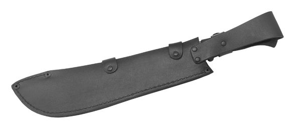 Для удобной переноски и хранения мачете "Нарвал" комплектуется кожаными ножнами с жёстким подвесом. Они обеспечивают надежную фиксацию на поясе и защиту клинка от внешнего воздействия.