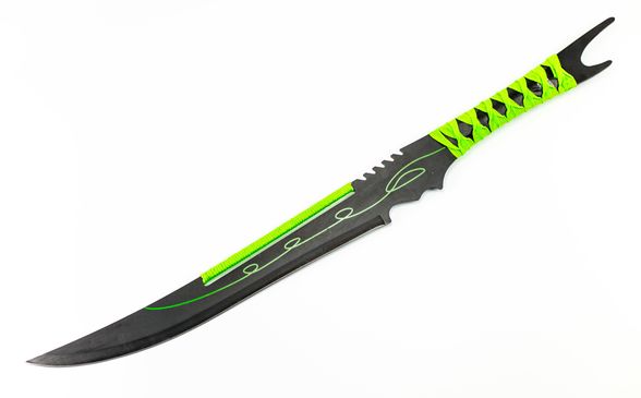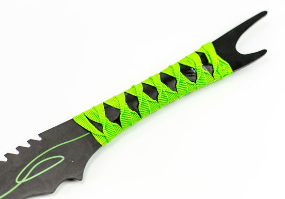 Фанатам компьютерных шутеров, где стоит задача убить всех зомби обязательно понравится необычная модель МАЧЕТЕ ZOMBIE. Этот странный на первый взгляд девайс имеет вполне функциональное назначение. Например, такой нож удобно использовать в полевых условиях для строгания древесины и раскалыванья поленьев. Клинок выполнен из нержавеющей стали которая не боится влаги и не вступает в контакт с другими жидкостями. Нож имеет геометрию, которая позволяет уверенно совершать колющие и рубящие движения. Чтобы обеспечить максимальное поражение, на тыльнике рукояти расположены два ударных выступа. Рукоятка со шнуром обеспечивает наличие достаточного количества запасной веревки на всякий случай.