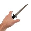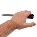 Хват плотный благодаря крупным упорам под пальцы. Сквозной монтаж - это про запас прочности. С таким соединением рукоять не разболтается никогда. Цвет чёрный, строгий, под любой комплект снаряжения. Темлячное отверстие в торце есть, но не мешает, если темляк не нужен.