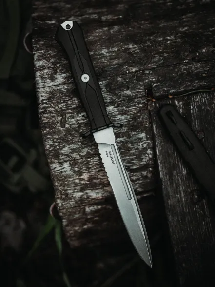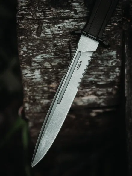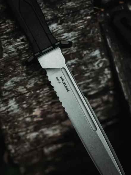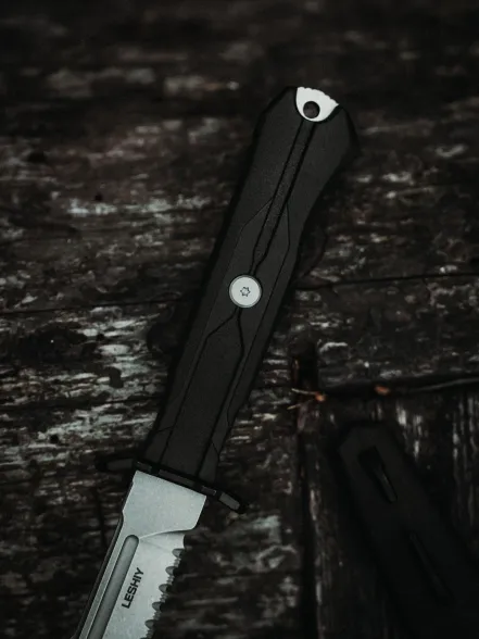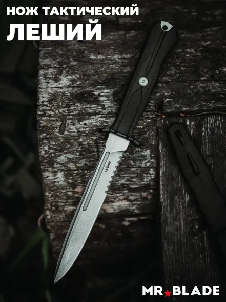 Тактический нож Mr.Blade Leshiy serrated blackwash, сталь AUS-8, рукоять Black Elastron