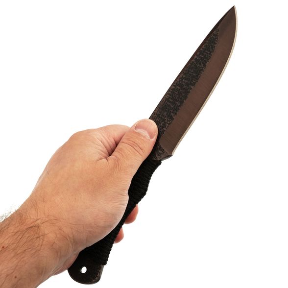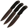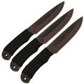 В набор входит три сбалансированных ножа из рессорной стали 65Г, которая имеет чрезвычайную ударную вязкость и стойкость к боковым нагрузкам. Это нужно для того, что бы нож не раскололся от нагрузок при попадании в мишень.