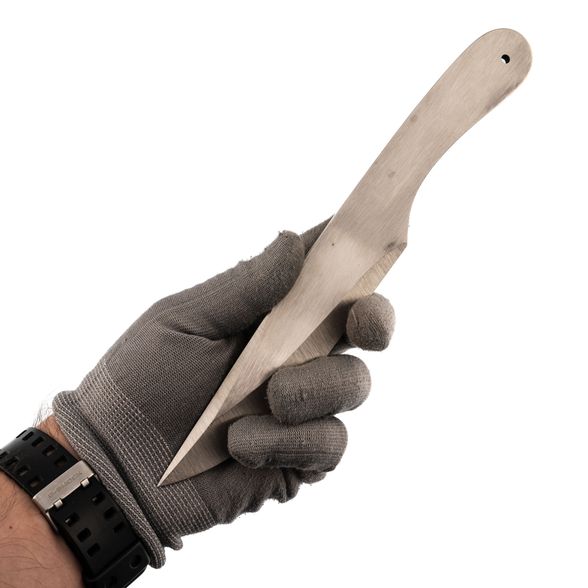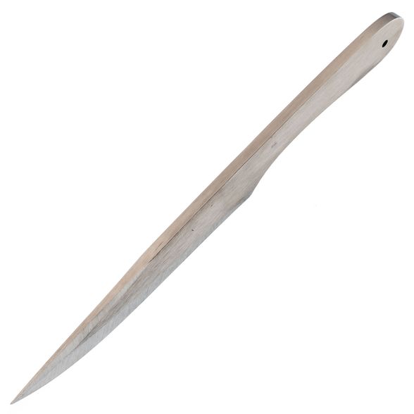 “Осётр” от кузницы Коваль приятно поразит любителей спортивного метания ножей. Являясь по сути спортивным снарядом, он имеет ряд признаков, которые роднят его с настоящими рабочими ножами. Спору нет, приятнее метать в мишень серьёзный клинок, а не невесомую зубочистку. И “Осётр” даст возможность получить удовольствие от спорта метких и смелых. Он выкован из пружинно-рессорной стали 65Г, которую отличает высокая устойчивость к износу. Масса ножа достигает почти четверти килограмма. Каплевидный профиль клинка придаёт ему благородный вид и обеспечивает хорошее вхождение в мишень при правильном броске.