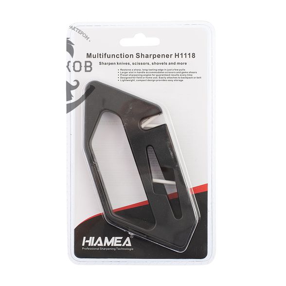 МНОГОФУНКЦИОНАЛЬНАЯ ТОЧИЛКА ДЛЯ НОЖЕЙ И НОЖНИЦ Арт. H1118 это простой и надежный инструмент, который без лишних сложностей позволит привести ваши ножи в рабочее состояние. Здесь работает обычное правило - лучше регулярно подтачивать нож в процессе работы, чем потом нести нож в мастерскую и платить за его заточку. Корпус точилки выполнен из ударопрочного пластика и оснащен двумя типами заточных элементов. V-образный элемент для рабочих и кухонных ножей и Z-образное отверстие для заточки ножниц.