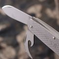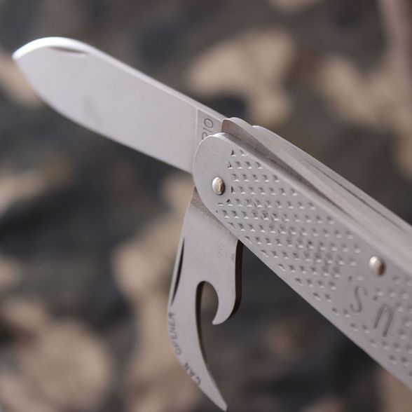 Многофункциональный нож Ontario CAMP KNIFE – небольшая, удобная модель металлического мультитула. Этот компактный кемпинговый нож имеет традиционную конструкцию. Основные элементы: нож с клинком (7 см) из стали 420 High Carbon и консервный нож – с одной стороны, открывалка и плоская отвертка – с другой. Также складной нож Онтарио имеет кольцо для темляка. Длина в сложенном виде – 9,2 см, в раскрытом – 16,5 см. Брендовый мультитул с открывалкой понравится любителям походов – особым ценителям практичности и надежности!
