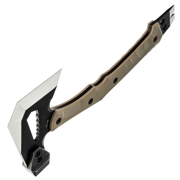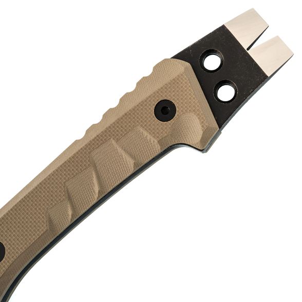 Многофункциональный топор FT-02 HX OUTDOORS - верный попутчик любителя приключений. Благодаря небольшому весу он не обременит туриста на марше, а при работе подчинится любой, даже не самой сильной руке. Несмотря на компактность, благодаря удачной геометрии полотна этот невеличка вполне справится с бревном диаметром 10-15 см, а нарубить сучьев, нащепать лучины для растопки, заточить колышки с его помощью не составит труда. А перевернув топор, с помощью плоского утяжелённого обуха вы легко забьёте гвоздь в доску или кол в землю, расклините неподатливое бревно. Обкладки рукояти сделаны из неубиваемого стеклотекстолита G10. Топор комплектуется пластиковым чехлом, который надевается на полотно и может быть закреплён на поясе.