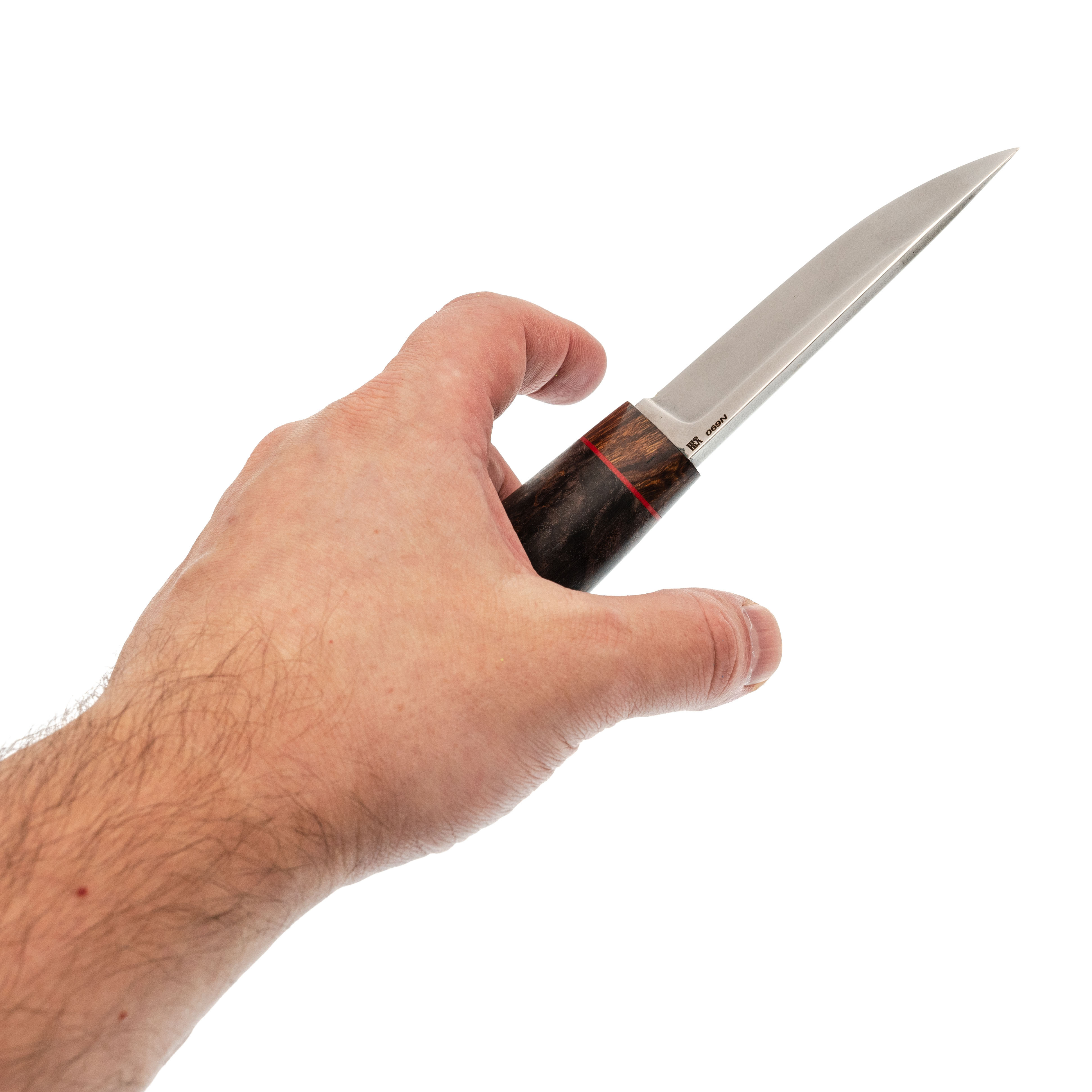 Финка Карп - это дань уважения классическим финским формам, где главное - удобство и честная работа без лишнего блеска. Компактный спутник для походов, рыбалки и просто жизни на природе. Его форма повторяет традиционные пуукко - проверенные временем инструменты, в которых нет ничего случайного. Всё здесь продумано до мелочей: удобно, практично, красиво без вычурности.