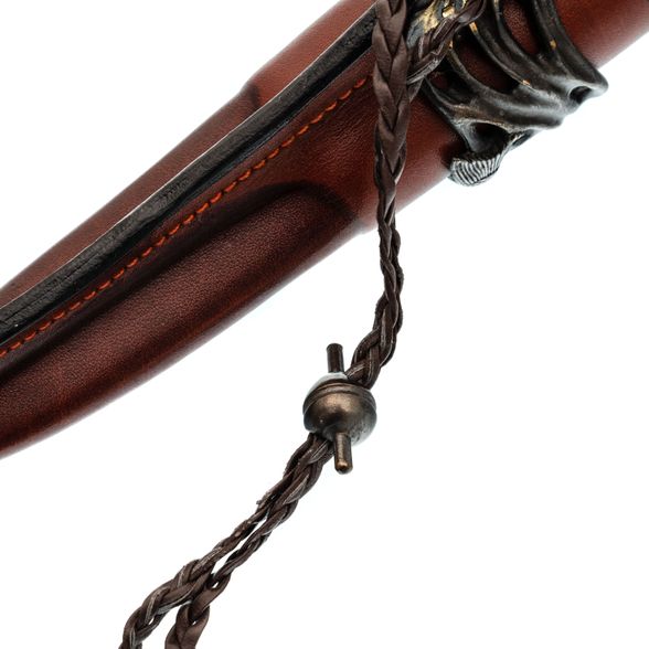 Натуральная кожа растительного дубления бережно подгоняется под каждый экземпляр. Кожа плотная, но эластичная, со временем только хорошеет. Декоративные элементы в виде карпа делают ножны узнаваемыми, а регулируемый подвес позволяет носить их так, как удобно именно вам. Бусина в форме поплавка завершает образ - маленькая деталь, которая говорит о внимании к мелочам.