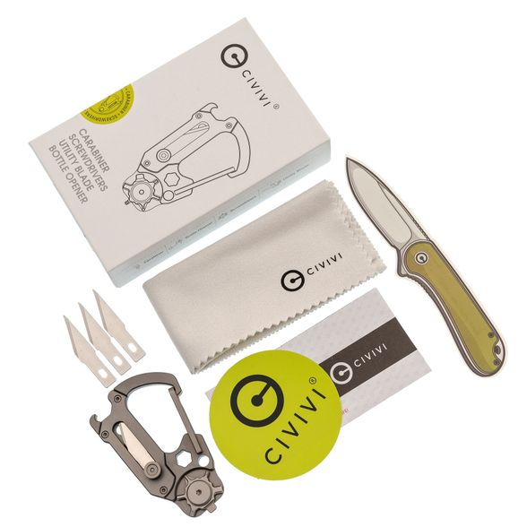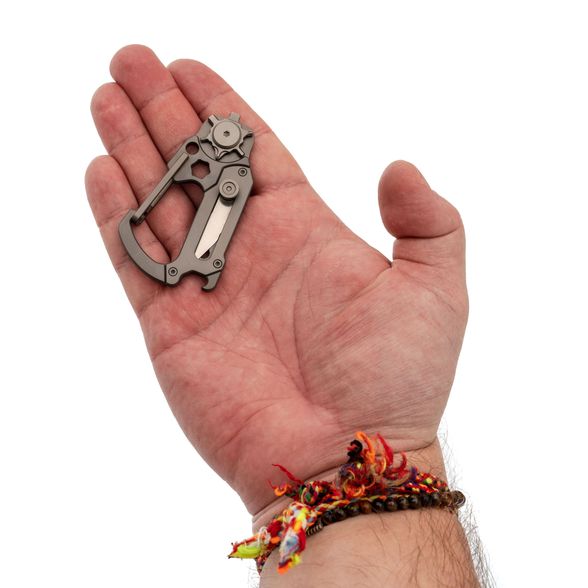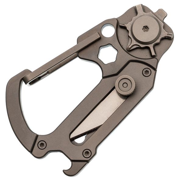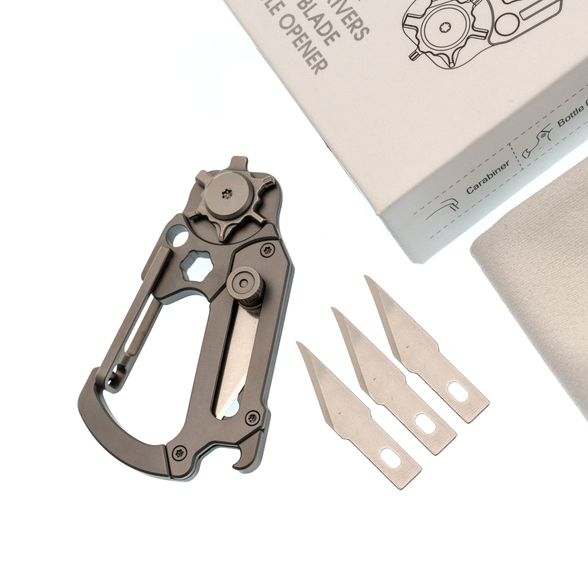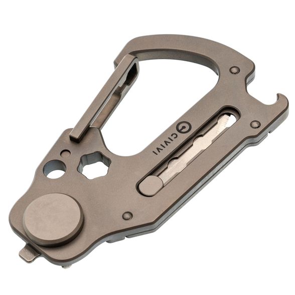Мультитул CIVIVI Polymorph, титан - соберите все свои вещи и будьте готовы с этим мультитулом с карабином Polymorph от CIVIVI! Прикрепите его к ключам, карману, рюкзаку или держите в машине для легкого доступа к обычным инструментам. Лезвие выдвигается с тремя точками остановки, так что вы можете выбрать идеальную длину для вашей задачи. Прочная и долговечная конструкция выдерживает жесткое и многократное использование. 3 сменных лезвия. Конструкция из серого титана. Шестигранная насадка. Вращающаяся отвертка с 6 головками. Крючок карабина с подпружиненным затвором. Открывалка для бутылок.