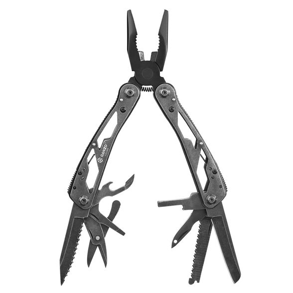 Инструменты: Плоскогубцы, кусачки, нож с прямым лезвием, нож с серрейторной заточкой, ножницы, пила, миниатюрная плоская отвертка, крестовая отвертка, инструмент для зачистки проводов, открывалка для бутылок, консервный нож, держатель бит