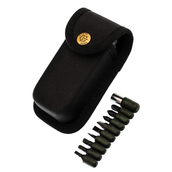 - Набор из 9 бит - расширяет возможности мультитула, позволяя иметь с собой целый набор отвёрток.