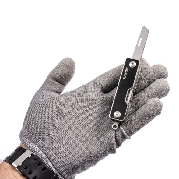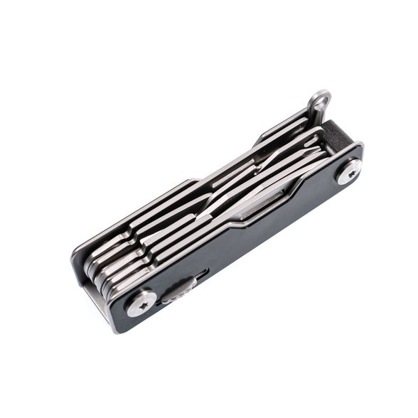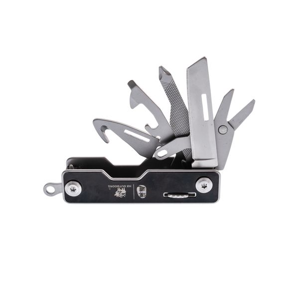 Портативный мультитул HX OUTDOORS HAN DAO 6-В-1 выполнен в формате брелка для ключей. В корпусе этого компактного инструмента разместились: две отвертки и две открывалки, клинок рабочего ножа с геометрией танто, крюк-стропорез,компактные ножницы, а такжа игла для извлечения сим-карт. Карманный многофункциональный инструмент выполнен из стали марки 420 с хорошими антикоррозийными и жаростойкими свойствами. Размеры инструмента чуть больше обычного ключа, а внутри располагается такая мощная начинка. В тыльной части размещено складное кольцо для ключей.