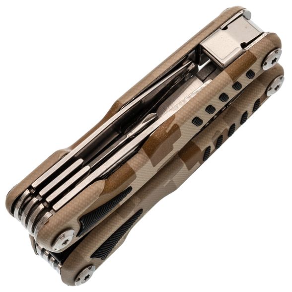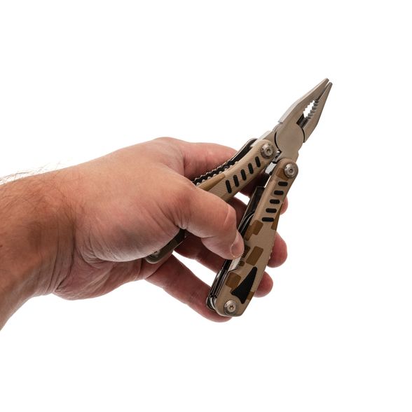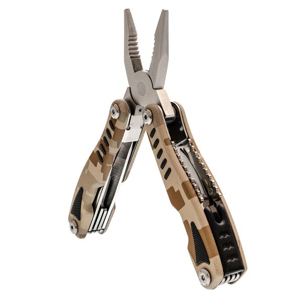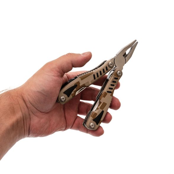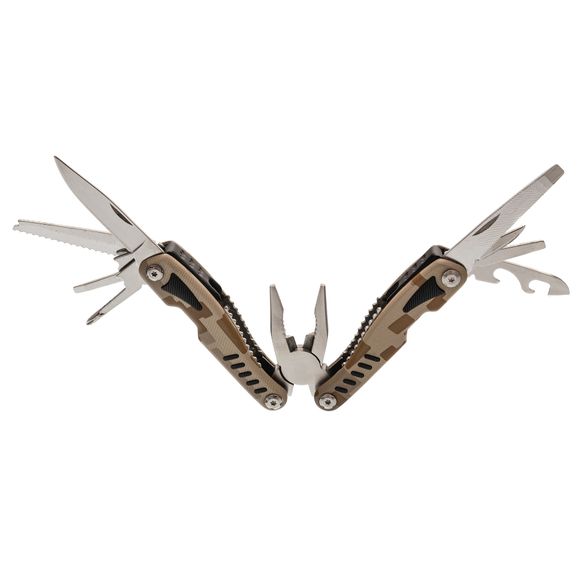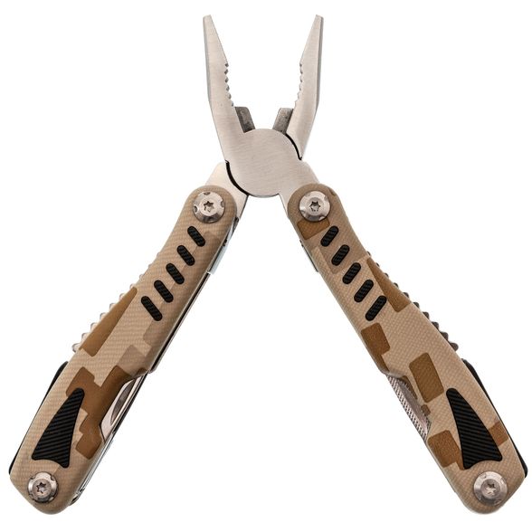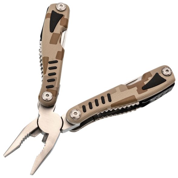 Обратите внимание на этот новый мультитул в камуфляжной расцветке с 11 функциями, оборудованный прочной пластиковой рукояткой и лезвием из стали 420. Благодаря доступным снаружи инструментам с фиксацией и легкому весу в 263 грамма, этот мультитул станет удобным инструментом как для походов, так и для бытовых задач. Получите все преимущества по доступной цене и дополнительным бонусом - чехол из нейлона, обеспечивающий удобство и защиту при ношении и транспортировке.
