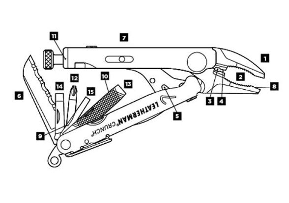 Аксессуар Leatherman Crunch является универсальным носимым атрибутом, который берут в поход, поездку на велосипеде и даже обычную прогулку. В мультитуле встроено все необходимое для выживания и ремонта: