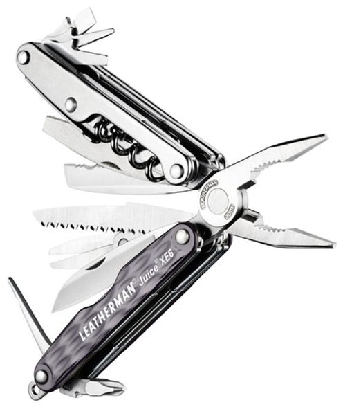 Имея чуть более мощный корпус, чем модель Cs4, мультитул Leatherman Juice Xe6 при этом только выигрывает. Будучи самым мускулистым в серии Jucice, этот инструмент тем не менее идеально подходит для узких ладоней и удобен для работы в труднодоступных местах. Это один из трех мультитулов в серии Juice, у которого есть штопор. Итак, с инструментом Xe6 вы вполне можете обпилить пару сучков для создания идеальной полянки для пикника, собрать походные кресла, открыть бутылочку вина, порезать сыр и сервировать его с крекерами.