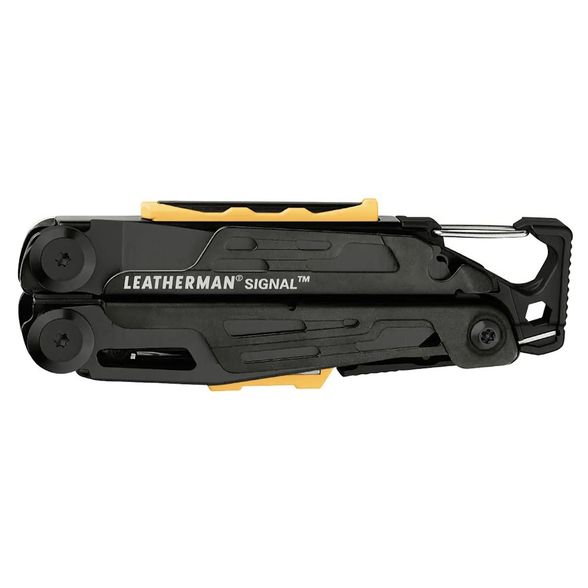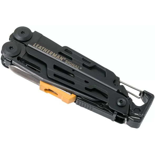 Signal - идеальный инструмент для любых приключений, который сочетает в себе 19 полезных инструментов в компактном корпусе длиной 114 мм. Этот многофункциональный инструмент готовит вас к неожиданностям с помощью огнива, лезвия с комбинированной заточкой из стали 420HC и аварийного свистка. Затяните снаряжение с помощью настраиваемого бит-держателя и закрепите колышки палатки с помощью встроенного молотка. Оснащайтесь и отправляйтесь дальше с Leatherman Signal. Покрытие DLC на нержавеющей стали и черном цвете повышает коррозионную стойкость и неприхотливость инструмента. В комплект входит чехол из нейлона.