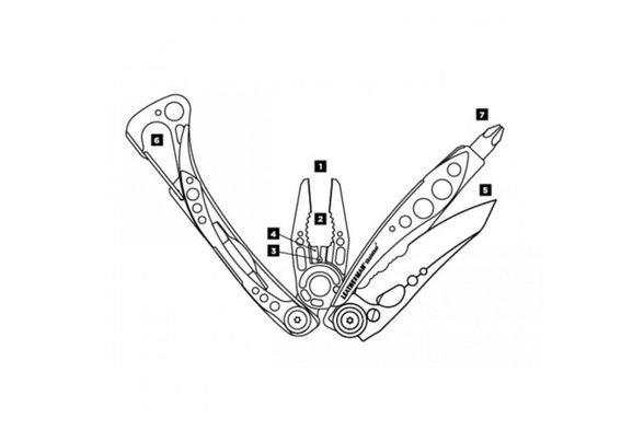 В Skeletool собраны необходимые инструменты для решения повседневных задач: нож, отвертка, гаечный ключ, карабин и серрейторная кромка. Инструменты расположены так, чтобы их можно было открыть одной рукой.