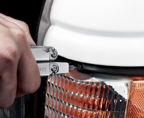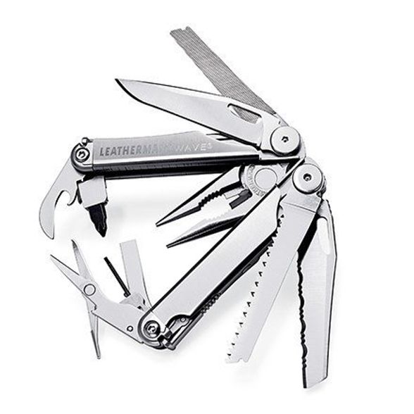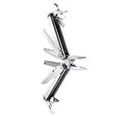 Нож прямой, нож серрейторный (ножи открываются одной рукой), напильник по дереву и металлу, алмазный напильник, пила, кусачки, битодержатель, 5 отверток (2 - часовые), консервный нож, открывалка для бутылок, страховочное кольцо. Все опции фиксируются от случайного закрытия или выпадания.