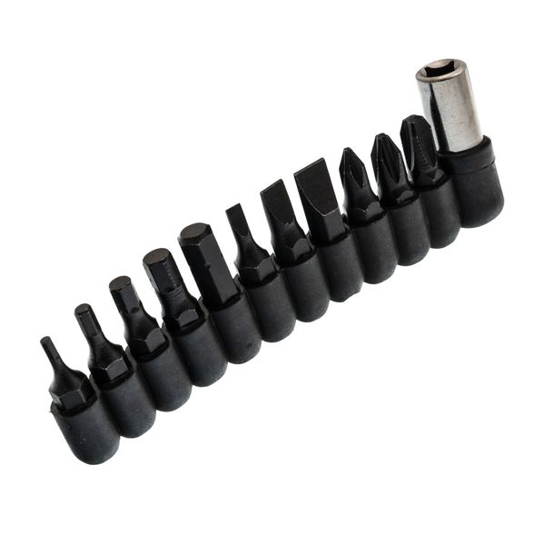 - Битодержатель который крепится к крестовой отвёртке - позволяет использовать классические биты и те, которые идут в комплекте.