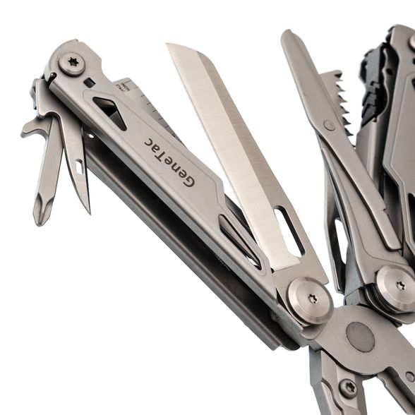 GeneTec MQ071 - это многофункциональный инструмент премиального уровня, созданный для тех, кто ценит удобство, прочность и универсальность. Благодаря продуманной конструкции и высокому качеству сборки, этот мультитул станет вашим надёжным спутником как в быту, так и в путешествиях. Устройство оснащено прочной клипсой для ношения и поставляется в комплекте с удобным нейлоновым чехлом, что делает его максимально практичным в использовании.