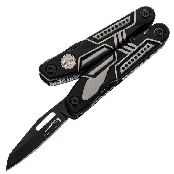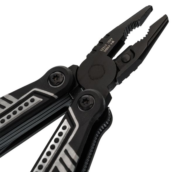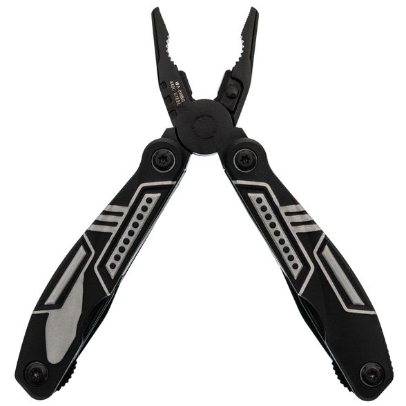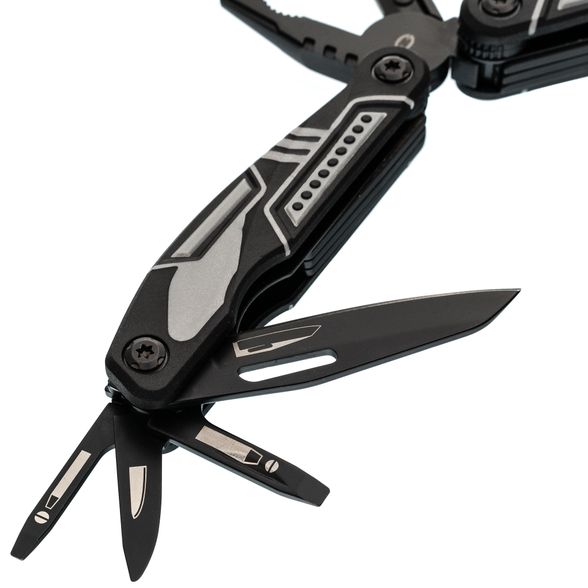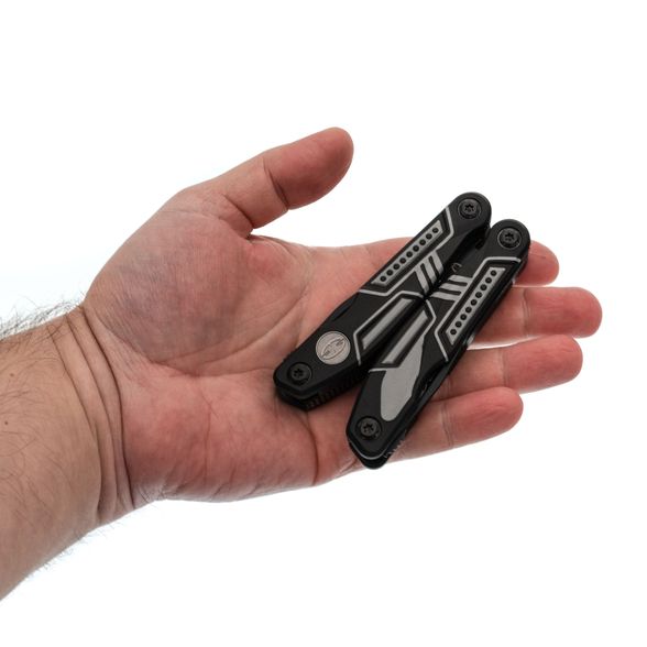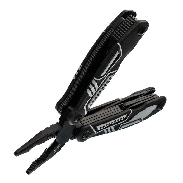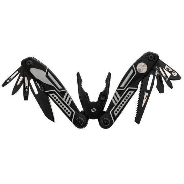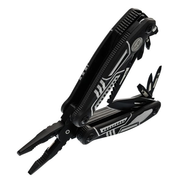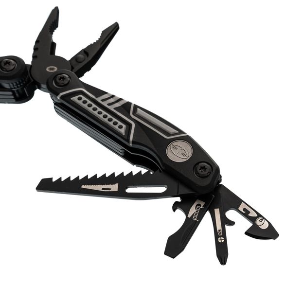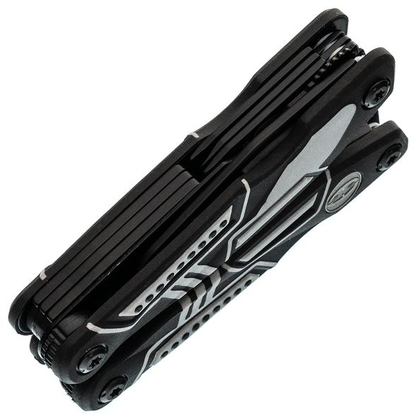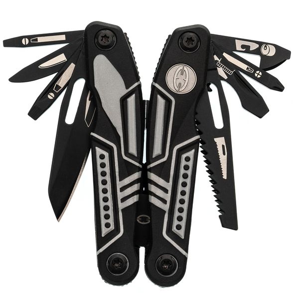 Тактический мультитул Ranger + оснащен всем необходимым. Корпус, оснащен плоскогубцами, пилой, большим и маленьким лезвием, отверткой Phillips, тремя раздельными отвертками и двумя раздвижными бутылочными открывашками.
