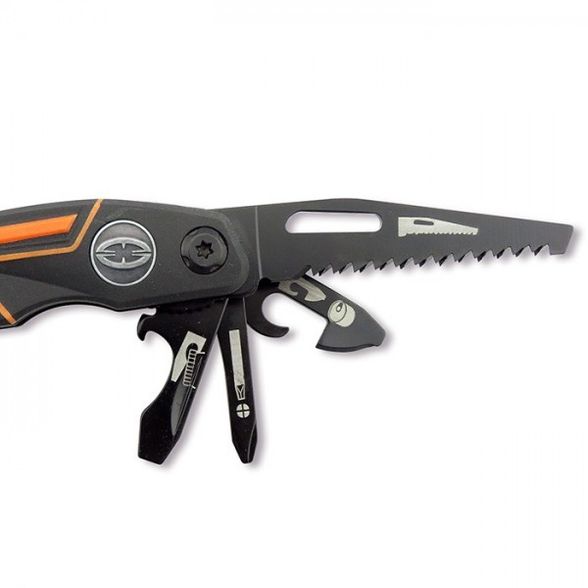 Тактический мультитул Ranger + оснащен всем необходимым. Корпус, оснащен плоскогубцами, пилой, большим и маленьким лезвием, отверткой Phillips, тремя раздельными отвертками и двумя раздвижными бутылочными открывашками.