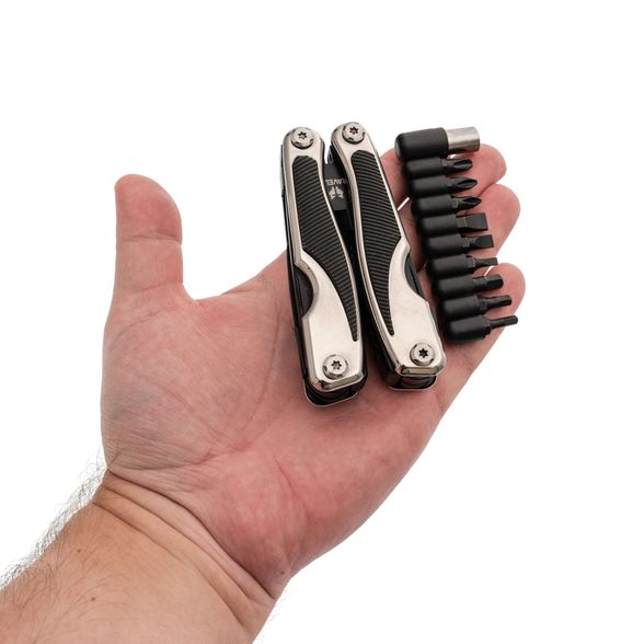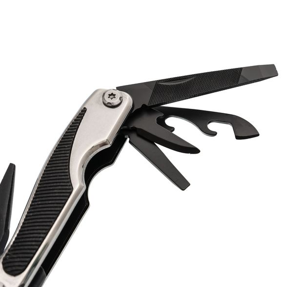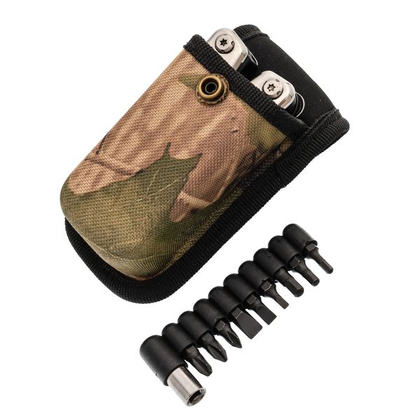 Мультитул TM9587 обеспечивает 9 функций в одном компактном инструменте. Изготовленный с рукояткой из стали с накладками резины, он обеспечивает удобное и надежное сцепление, даже во время интенсивного использования. С весом 277 граммов, этот мультитул чувствуется прочным и надежным в руках, что делает его идеальным выбором для различных задач