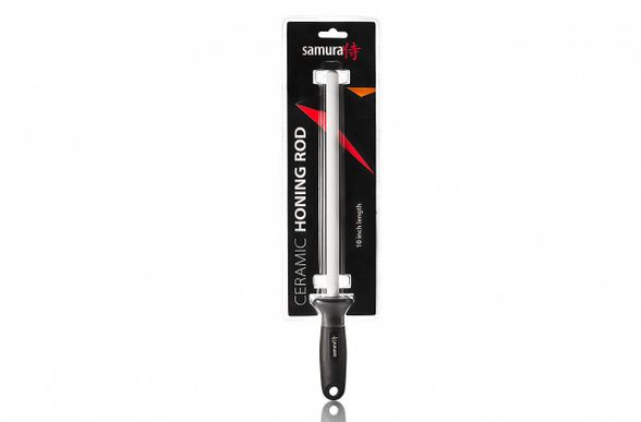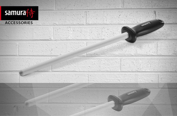 Клинок твердостью 58-63 HRC – самый подходящий материал для работы керамическим мусатом Samura. Ножи из такой стали мусат сможет поддерживать в идеальном состоянии, значительно увеличивая время между заточными сессиями.