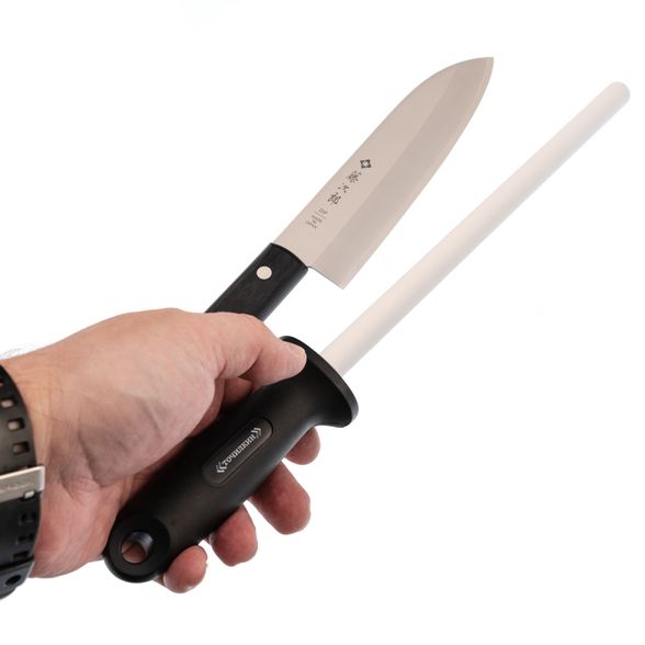 Керамический стержень, используемый в данной модели отлично подходит для правки ввиду того, что снимает самый необходимый минимум метала для возвращения режущей кромке остроты.
