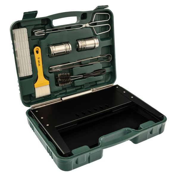 Набор для барбекю с мангалом - это идеальный шашлычный набор для приготовления вкусных блюд на углях. В наборе есть мангал с решетками, стальные шпажки, ножницы-щипцы для углей, щипцы для мяса, форма для насадки мяса, перечница и солонка, ершик для чистки и кулинарные кисточки. Все необходимые инструменты для приготовления шашлыка в одном удобном кейсе для переноски. Это отличный подарок для близкого человека или для отдыха всей семьей. Теперь вы можете наслаждаться вкусным шашлыком на природе с комфортом и удобством благодаря этому набору.