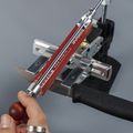 - Точный поворотный механизм. Обеспечивает стабильный и равномерный угол заточки с каждой стороны лезвия. Погрешность при повороте рамки не превышает 0,4, что гарантирует точный результат.