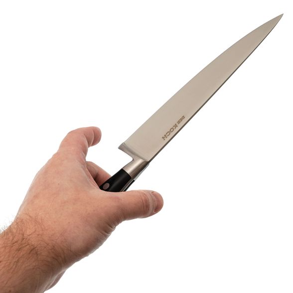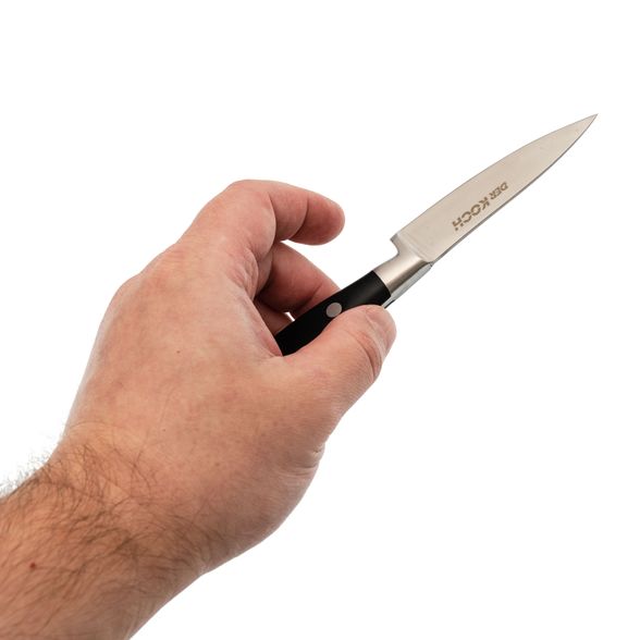 - Ножи не предназначены для резки костей, замороженных продуктов или очень твердых предметов. Помните, что ножи Der Koch созданы для работы с продуктами, которые можно легко перекусить зубами, не нанося вреда эмали.