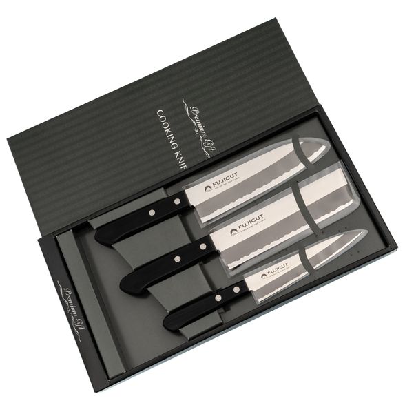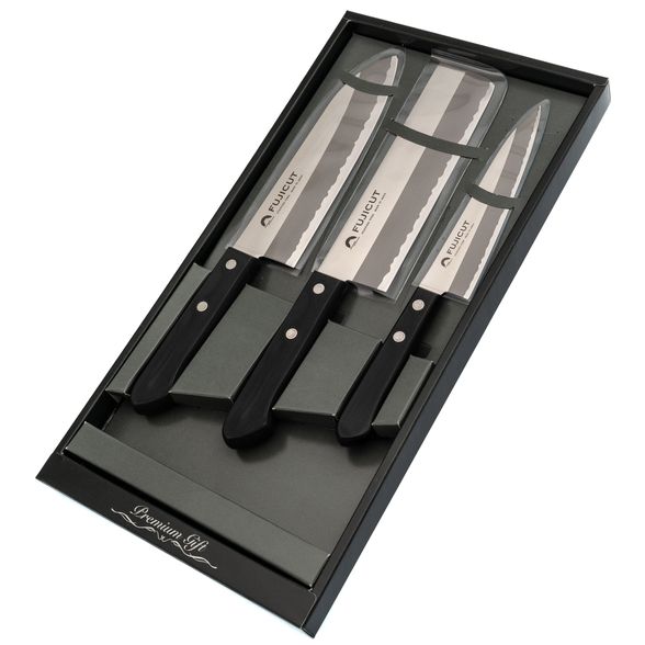 Набор из 3-х кухонных ножей Tojiro Fuji Cutlery TJ-GIFTSET-B - это результат вековых традиций японского ножевого мастерства, переосмысленных с использованием современных технологий. Созданный для тех, кто ценит не только функциональность, но и эстетику на кухне, этот набор станет надежным союзником в ежедневной готовке и вдохновит на эксперименты.