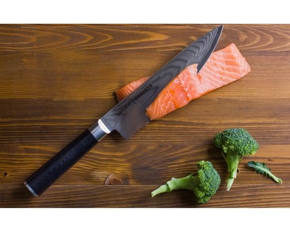 3. Поварской кухонный нож из дамасской стали Samura "Gyuto", 67 Layers Damascus with Japanese VG-10 Steel Core, D-Shape G-10 Handle 20.00 см.