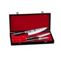 В наборе представлены три ножа разных размеров, каждый из которых идеально подходит для конкретной задачи, обеспечивая оптимальный выбор для любой работы на кухне.
