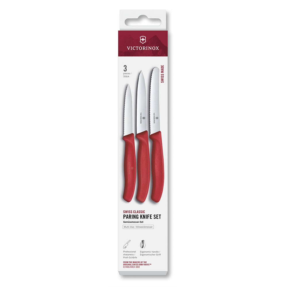Набор из 3х кухонных ножей Victorinox Swiss Classic, нержавеющая сталь, рукоять пластик, красный