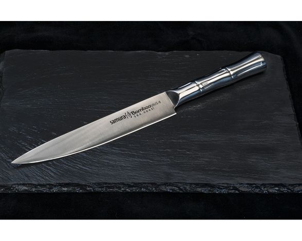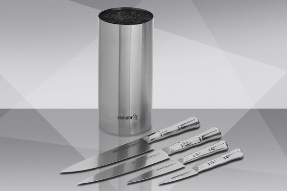 Набор из 4 ножей и подставки Samura Bamboo в подарочной коробке SBA-5, сталь AUS-8, рукоять нержавеющая сталь