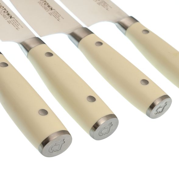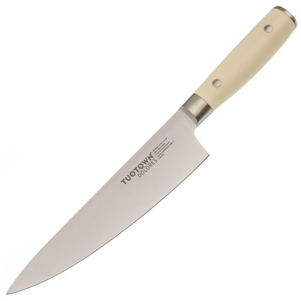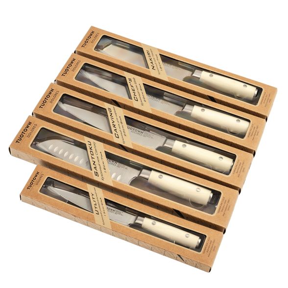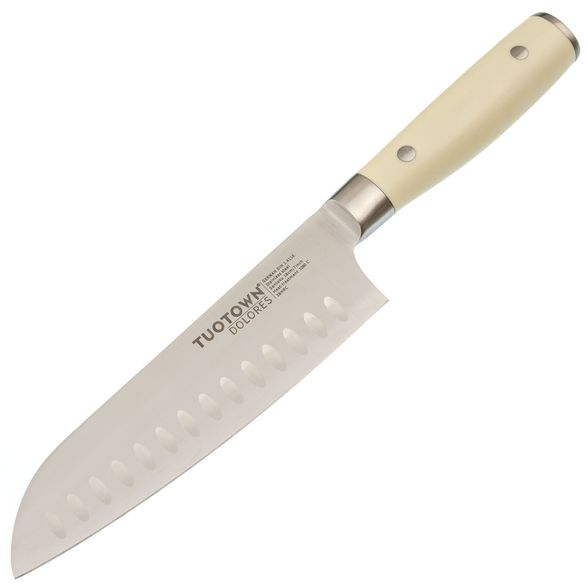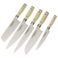 Набор кухонных ножей DOLORES - прекрасный подарок для любого начинающего шеф-повара или для вашей кухни. В набор входят пять острых ножей, предназначенных для различных случаев на кухне: поварской нож, нож сантоку, универсальный нож, накири и слайсер. Ножи изготовлены из прочной нержавеющей стали и дополнены удобными ручками из ABS-пластика белыми цвета. Этот набор идеально подходит для тех, кто хочет обновить свои кухонные ножи или купить надежный набор для близкого человека. Этот замечательный набор кухонных ножей станет отличным дополнением к любой кухне.