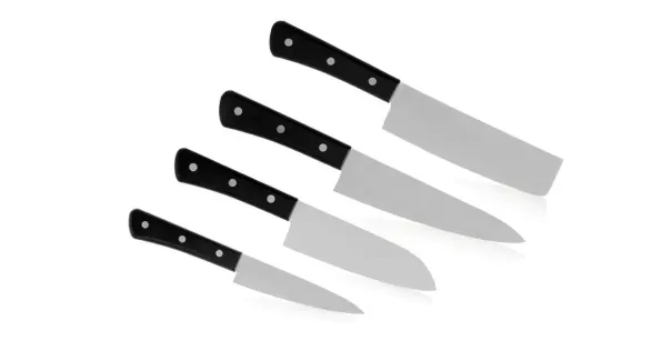 Ножи изготовлены из японской стали AUS-8, которая известна своей доступностью и отличными рабочими характеристиками. Эта сталь обеспечивает длительное удержание заточки и высокую коррозионную стойкость. Кроме того, AUS-8 легко поддается заточке, что позволяет быстро вернуть ножам первоначальную остроту. Клинки имеют тонкую геометрию и прямые спуски, что обеспечивает отличную режущую способность. Рукоятки выполнены из прочного ABS-пластика, устойчивого к воздействию влаги, что важно для использования в условиях кухни.