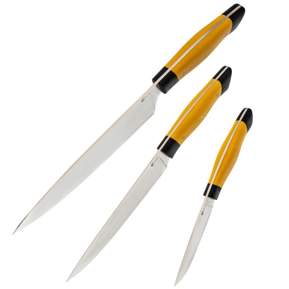 Набор ножей "Хозяин" от Кузницы Сёмина создан для истинных ценителей кулинарии. Каждый нож в этом наборе - результат кропотливой ручной работы, сочетающей современный подход и уважение к классическим традициям. Такой инструмент одинаково уместен как на профессиональной кухне ресторана, так и в арсенале увлечённого домашнего повара. Благодаря сбалансированной конструкции и выверенной геометрии лезвия, каждый нож даёт ощущение полного контроля при работе с продуктами.