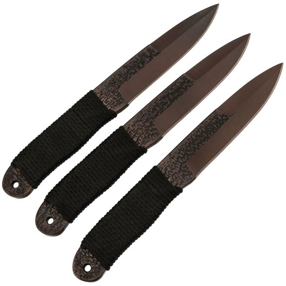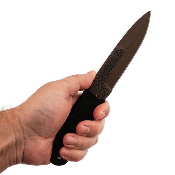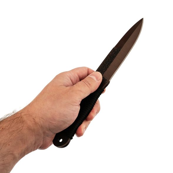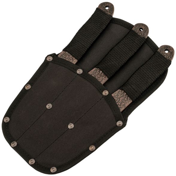 Рукоять каждого ножа оплетена синтетическим шнуром, обеспечивая удобный и надежный хват. В комплекте также поставляется жесткий чехол из нейлона с возможностью подвеса на пояс, благодаря чему транспортировка и хранение набора упрощается.