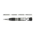 В комплект входит пять стальных магнитных бит под шлицы Torx T6, Torx T8 и Torx 10, обычный плоский шлиц и крестовой Phillips