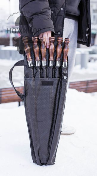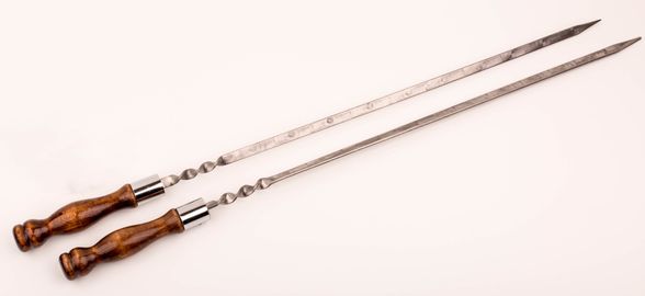 - Шесть шампуров из нержавеющей стали толщиной 3мм, с деревянной ручкой из бука