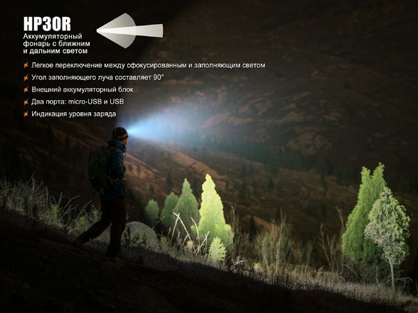 Налобный фонарь Fenix HP30R Cree XM-L2, XP-G2 (R5) с корпусом серого цвета - мощная модель с выносным батарейным блоком питания, рассчитанным на два аккумулятора класса 18650. Три высококачественных американских диода современного поколения обеспечивают беспрецедентную яркость в 1750 люмен. Центральный диод выдает хорошо сфокусированный дальнобойный луч, а два боковых диода позволяют получить заливной свет на ближнем расстоянии. Компактный налобный светодиодный фонарик Феникс HP30R оснащен также сигнальным режимом мигающего света, яркостью до 130 люмен для подачи сигнала "SOS". Металлический корпус фонаря стойкий к механическим нагрузкам и полностью герметичен, что позволяет использовать осветительный прибор во время дождя.