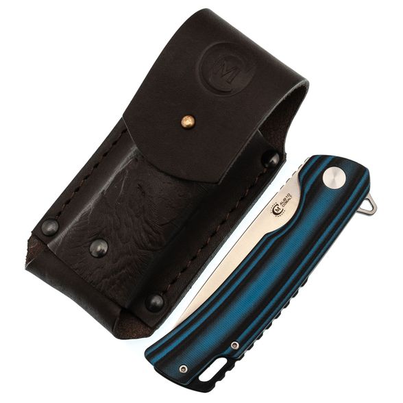 Рукоять изготовлена из прочного и износостойкого материала G10, который часто используется в производстве ножей. Накладки имеют объемную форму, комфортно ложась в руку и обеспечивая надежный хват. Такое исполнение позволяет длительное время работать с ножом без усталости руки. Безопасность при работе гарантирует надежный замок Liner-Lock, который удерживает клинок в открытом положении даже при значительных нагрузках. Нож Аляска можно носить на клипсе или в удобном кожаном чехле, входящем в комплект поставки.