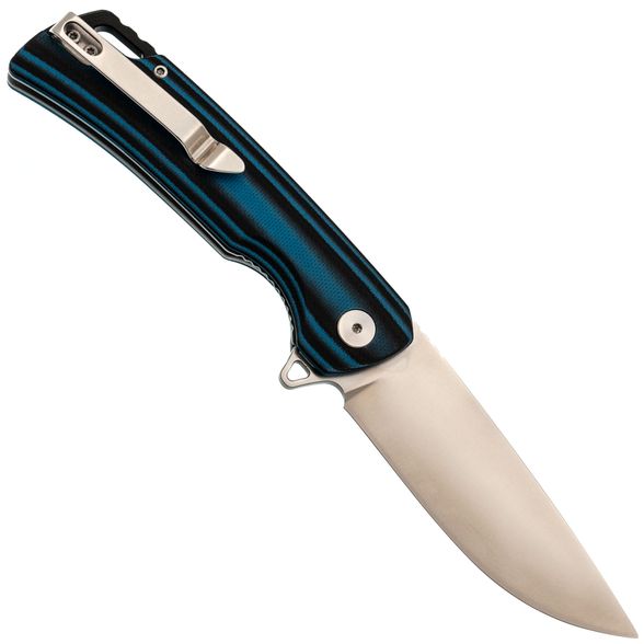 Клинок изготовлен из высококачественной нержавеющей стали AUS-10Co, которая характеризуется отличной стойкостью к коррозии и способностью долго сохранять остроту. Геометрия клинка включает линзовидные спуски от обуха, что обеспечивает эффективный рез и делает нож пригодным для широкого спектра задач: от открытия упаковок и разрезания материалов до нарезания продуктов. Открывание клинка осуществляется с помощью плавника, что позволяет удобно и быстро раскладывать нож любой рукой.