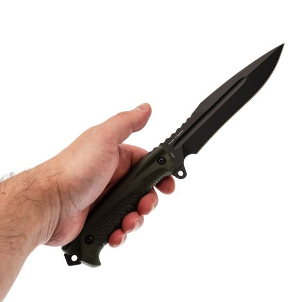 Длинный клинок с профилем Spear-Point хорошо работает на прокол. Толстый обух и спуски от середины добавляют запаса прочности и позволяют спокойно переносить силовую работу. Геометрия универсальная - нож подходит как для точных операций, так и для грубой задачи в лагере.