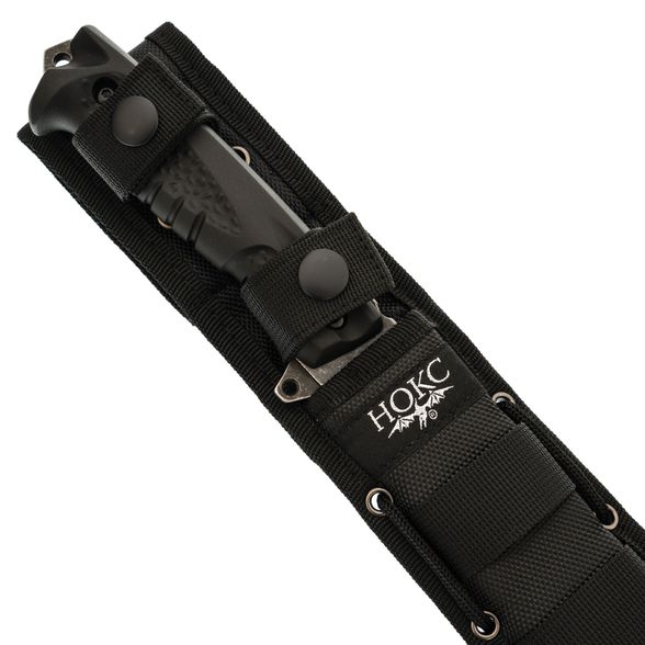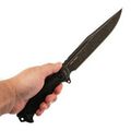 Нож Атлант-3 Black – непревзойденный выбор для ценителей качественных инструментов. Изготовлен из нержавеющей стали AUS-8 с покрытием black stonewash улучшающим сопротивление коррозии. Этот нож имеет не малый запас прочности, сохраняя при этом не плохой рез. У клинка есть большой чойл, который позволяет перехватить нож для каких-то мелких строгательных работ. С общей длиной 340 мм и клинком длиной 202 мм, он обладает внушительными габаритами, которые не побоятся большой работы. Рукоять изготовлена из термопластичного эластомера для удобства и надежного хвата. Нож поставляется в ножнах из кордуры с подвесом на пояс и имеет возможность жестко зафиксировать их относительно бедра.