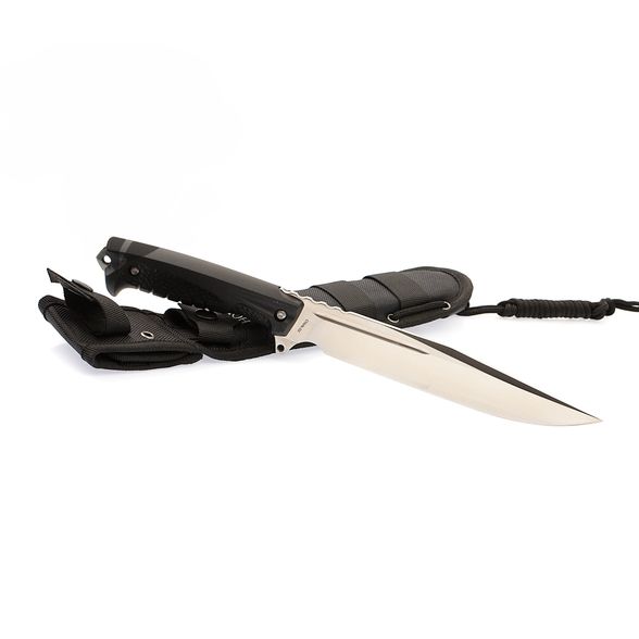 Нож Атлант 3 обладает общим минималистичным дизайном. Черная рукоять, выполненная из ABS-пластика, обеспечивает плотный хват и комфорт при использовании. Толщина обуха ножа составляет 5 мм, за счет чего его можно использовать для боевых задач и выполнения бытовых работ. Черный цвет придает инструменту строгий и элегантный вид, который оценят требовательные пользователи.